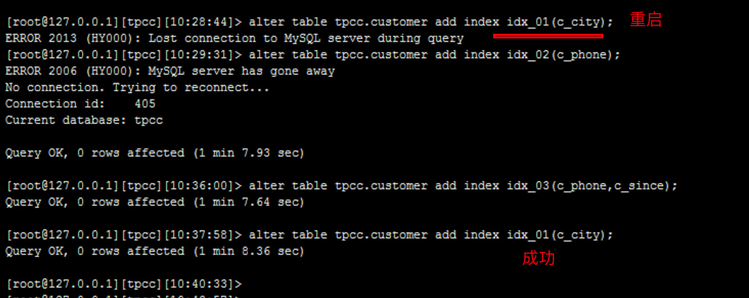 [root@127.0.0.1][tpcc][08:41:39]> alter table tpcc.customer add index idx_01(c_city);