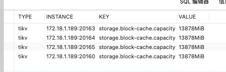 select * from INFORMATION_SCHEMA.CLUSTER_CONFIG t where t.KEY like ‘storage.block-cache.capacity’