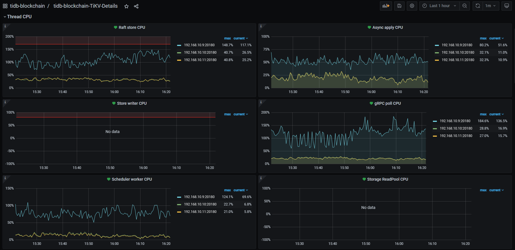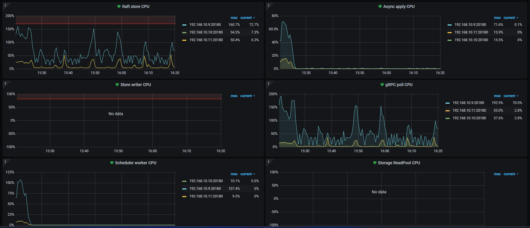 的时候4个tikv里面有一台tikv的cpu只有10-20,完全是在围观其他3个tikv。