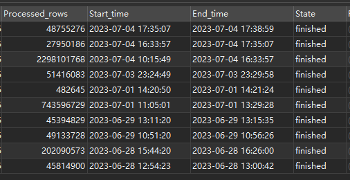 在今年4月份的时候,曾经进行了一次无优化的执行,写入数据量与现在相当,写入效率只有现在的一半不到。