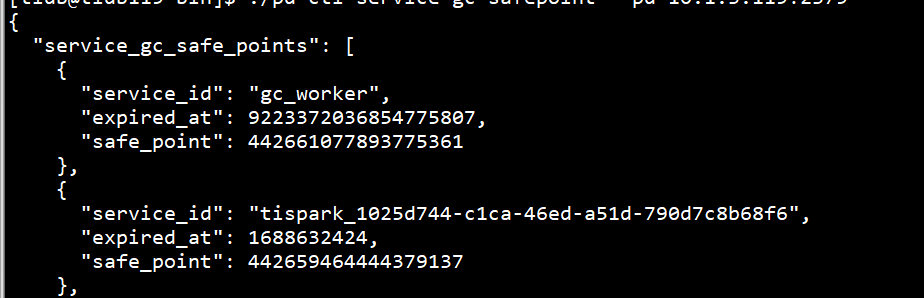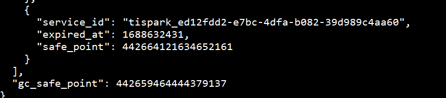 你看看有什么tispark的任务一直运行或不太正常 ,不能直接删,这是一些任务运行时为了保障需要的数据不被GC而设置的一个safepoint
