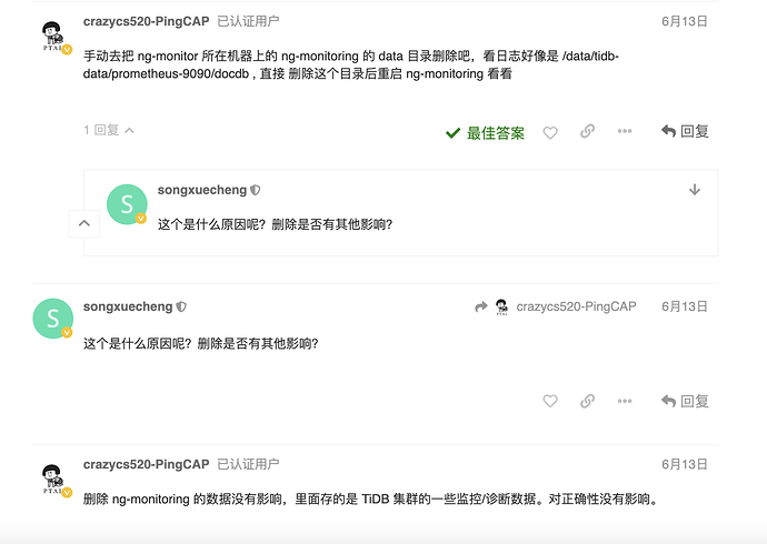 重启prometheus节点命令:tiup cluster restart -N 172.17.4.249:9090 这样重启的节点,重启后磁盘空间没有释放的