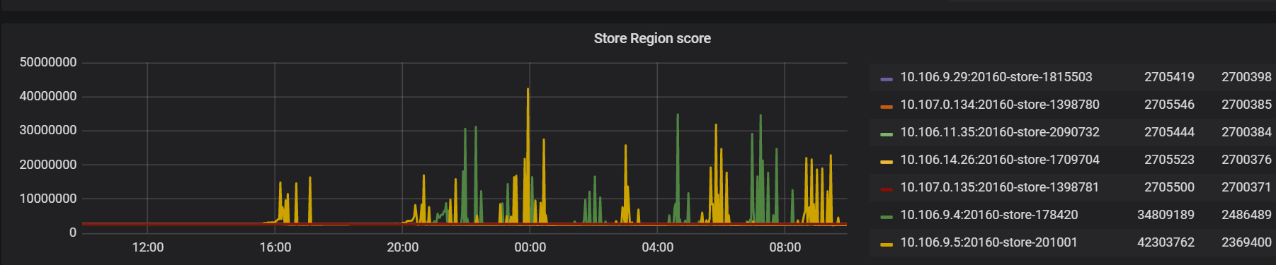 一直在平衡region,一天了也没完,这两个节点程锯齿状波动,上去再下来