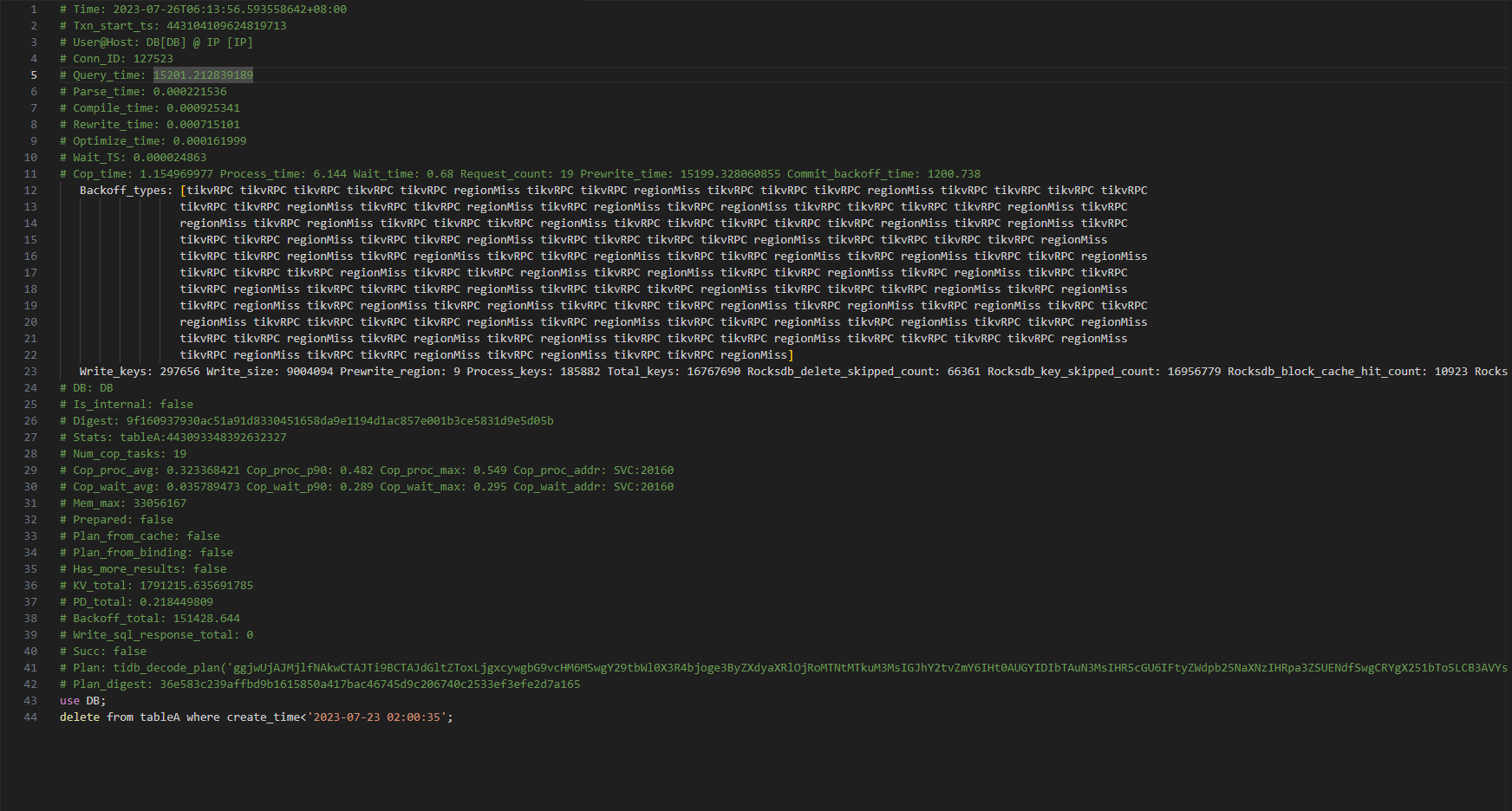 慢日志,为了能一张图截出来,Backoff_types因为太多且重复的被我删掉了大概40行。