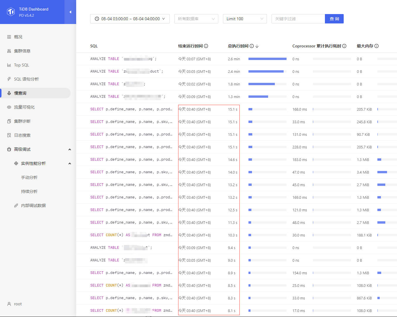 第二条sql是tikv的comprocessor时间长,是那个时间点tikv的压力大或者网络压力大