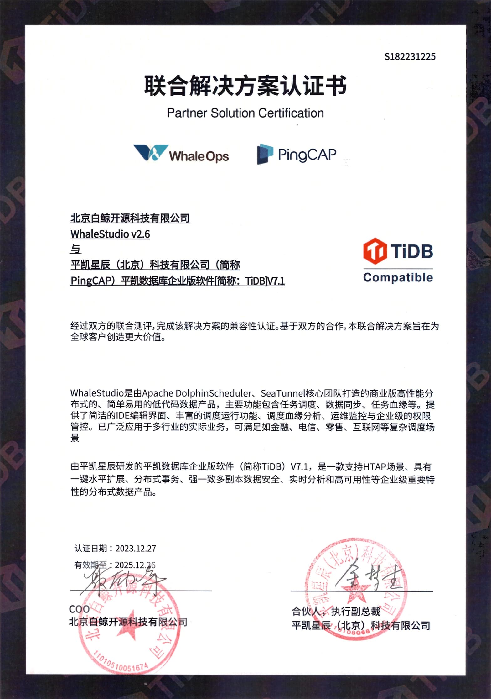 1. 白鲸开源的 WhaleStudio 与 TiDB V7.1 完成产品兼容性认证