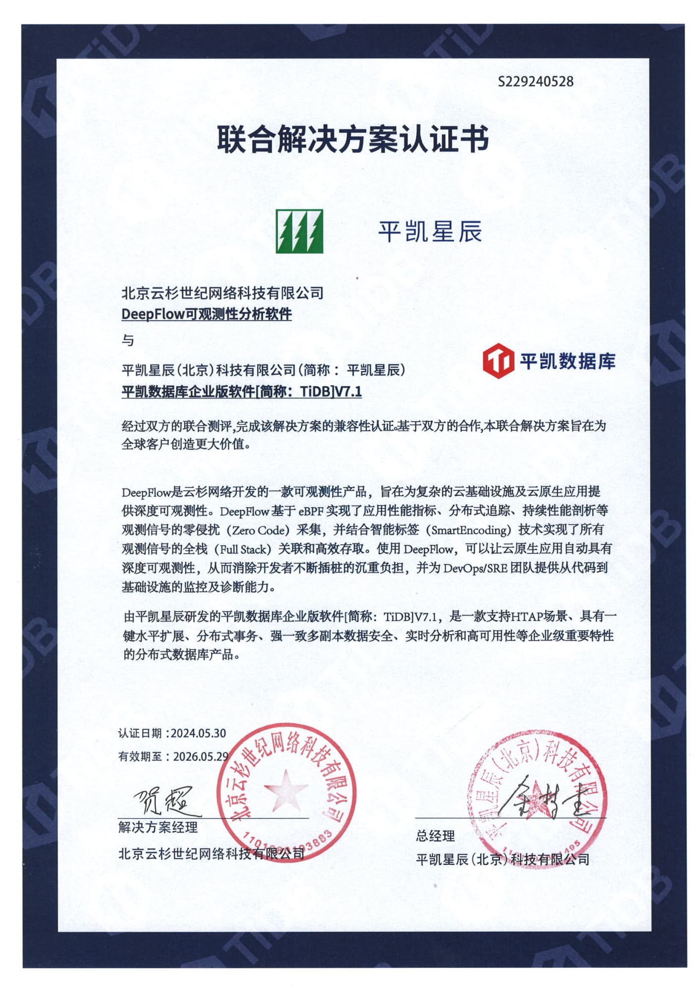 3. DeepFlow可观测性分析软件与 TiDB V7.1 完成联合解决方案认证