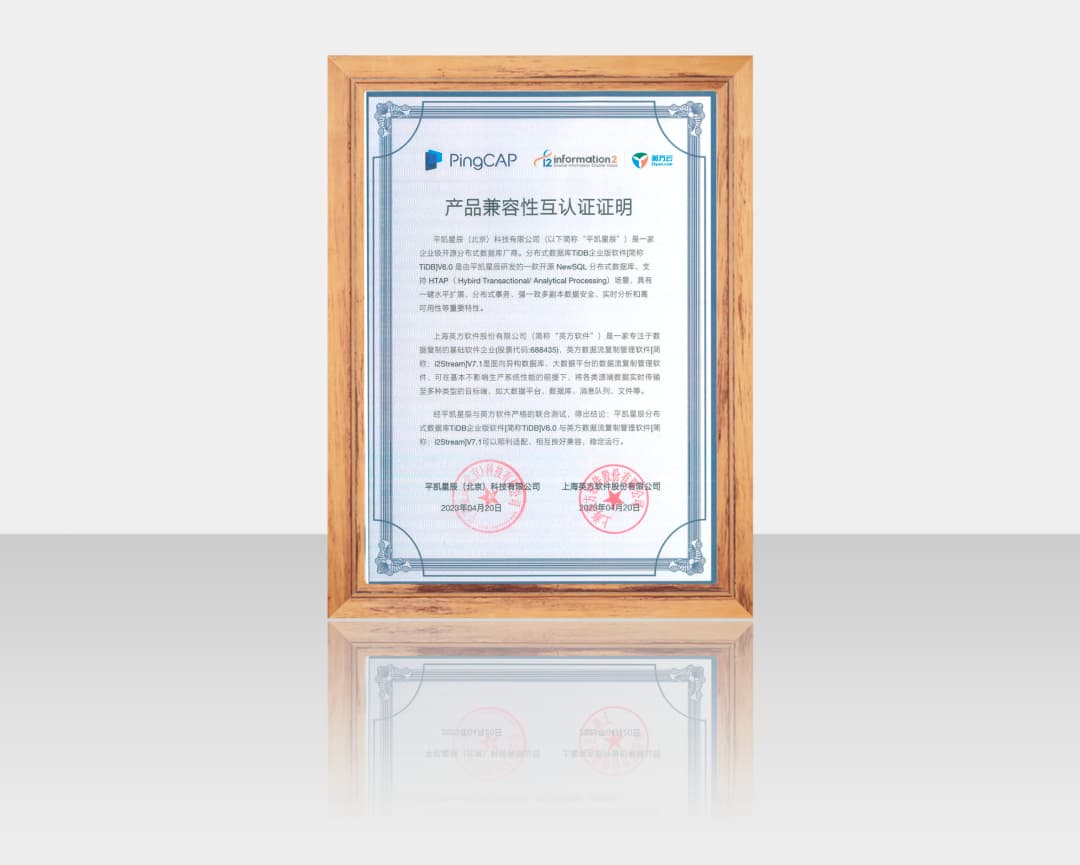 32. 英方软件与平凯星辰TiDB数据库完成兼容性认证