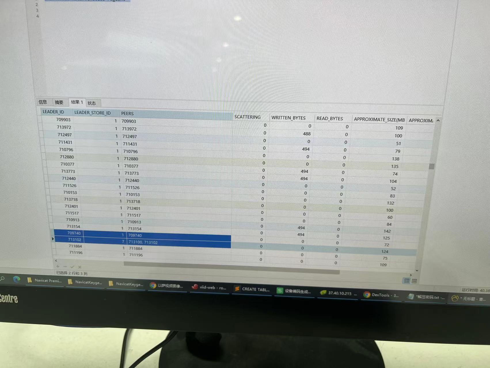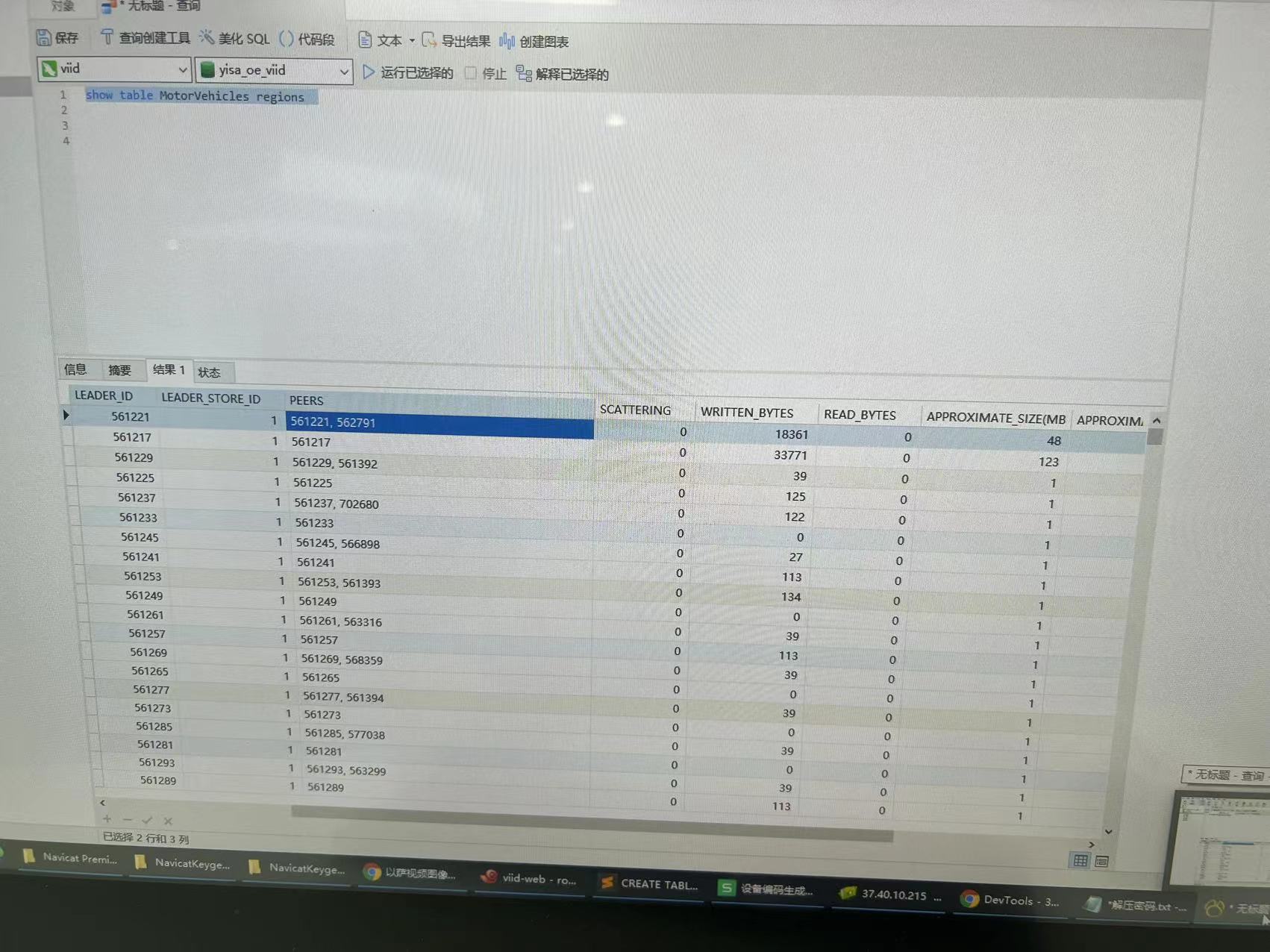 然后查看region:发现region里面的peers 有的有一个,有的有两个