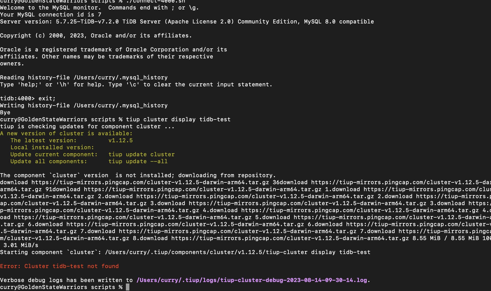 tiup --binary cluster