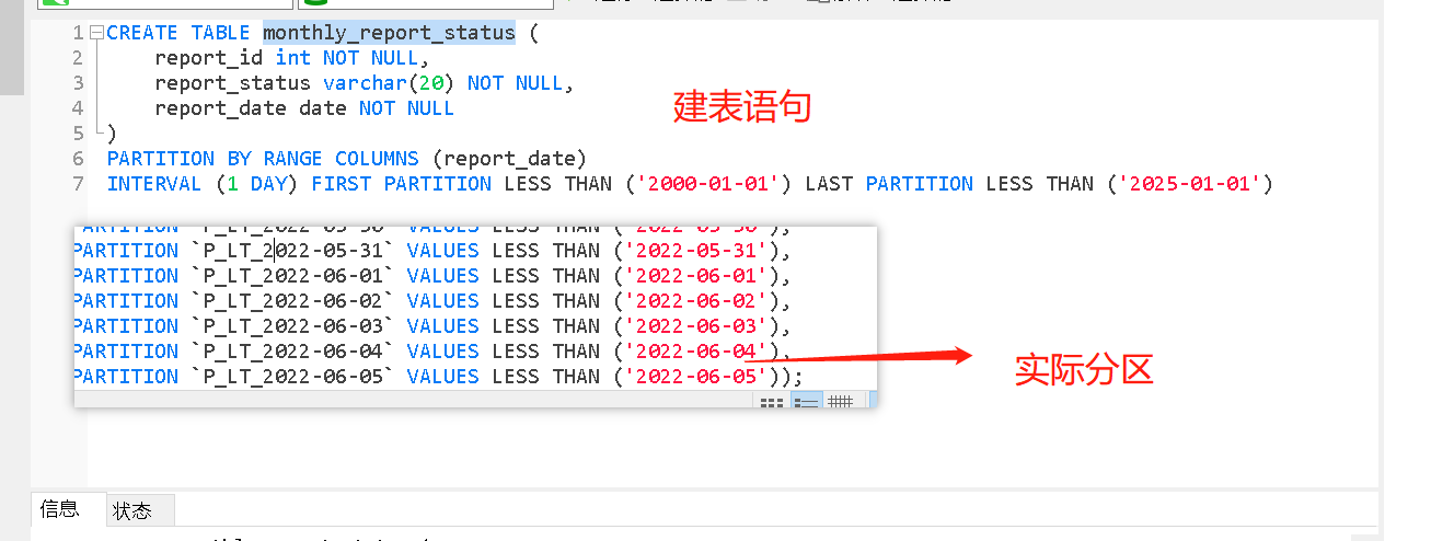 我看了一下range-interval是对指定范围,指定间隔,自动创建一定数量的分区,并不是每天自动按照分区字段去新增分区 ![]()