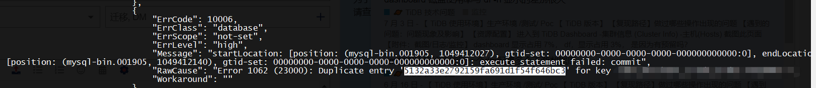 query-status返回的startLocation中的position获得;在迁移执行出错前,binlog position 可在上游 MySQL 中使用SHOW BINLOG EVENTS获得。