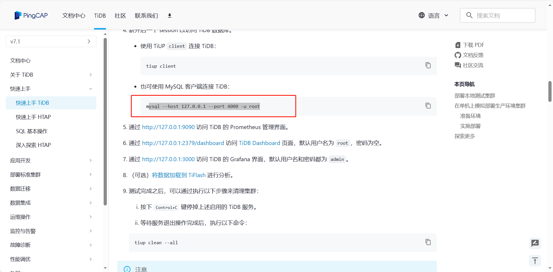 首先按照快速上手安装TIDB