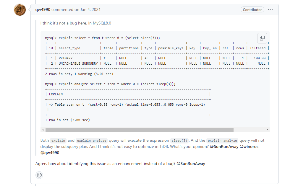 这个是 tidb 存在很久的一个限制了, 非关联子查询的计划,在 explain 里面显示不出来,详见这个 issue: https://github.com/pingcap/tidb/issues/22076