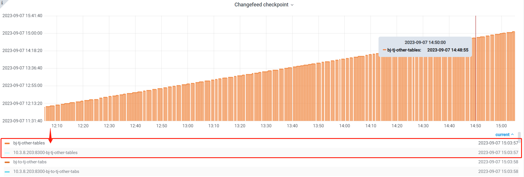 【遇到的问题:问题现象及影响】标记的这个ticdc任务:bj-tj-other-tabs,是昨天已经remove移除的同步任务,命令行执行查询,也提示没有这个任务,但是,在grafana界面上,还是能看到这个任务,并且,显示还在实时同步。