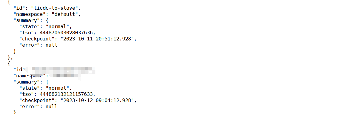 cdc服务(主集群)的日志在使用默认tso创建任务后没有error的日志输出