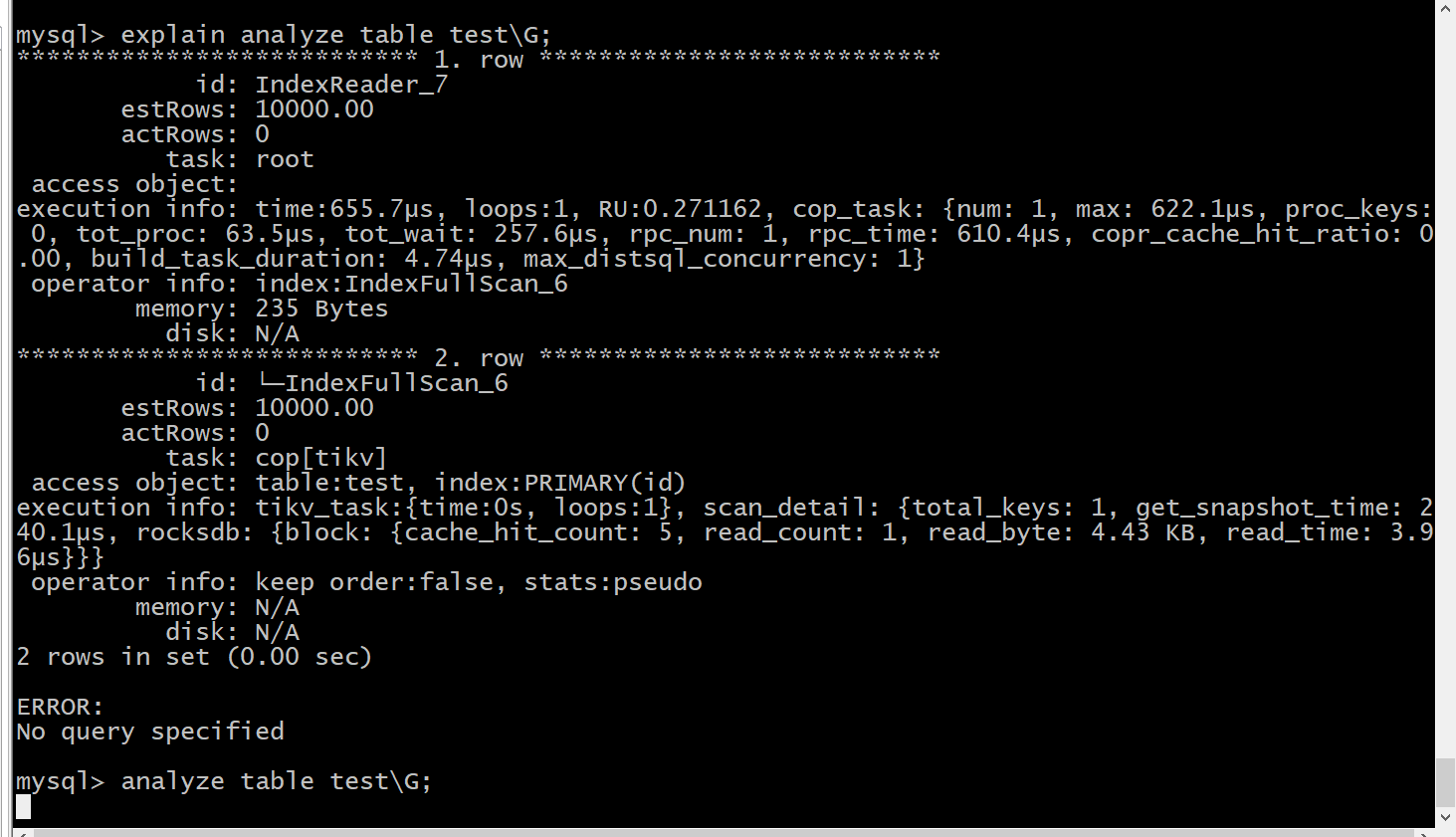 目前的集群,为啥我analyze table test表,需要13分钟? 关键目前这个test表还是一个空表,表结构如下: