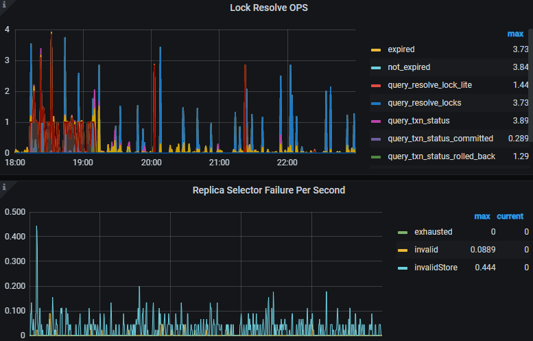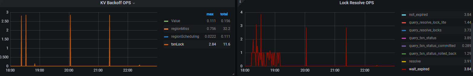 LOCK resolve OPS的红色query_resolve_lock_lite和KV Backoff OPS的txnLock的时间段是一致的啊,18:00-19:00,20:00,21:30