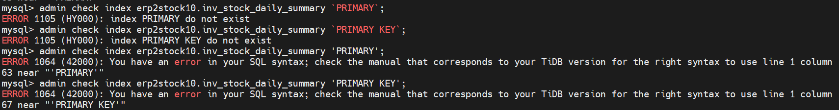 mysql> admin check index inv_stock_daily_summary PRIMARY KEY;