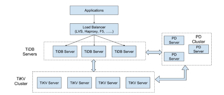 TiDB Server 是无状态的,其本身并不存储数据,只负责计算。它可以无限水平扩展,可以通过负载均衡组件(如 LVS、HAProxy 或 F5)对外提供统一的接入地址。TiDB Server 通过 TiKV 地址与 TiKV 交互获取数据,最终返回结果。