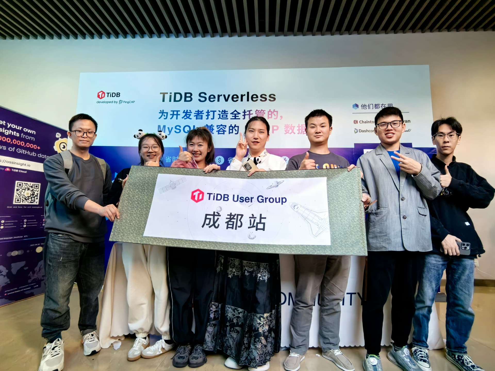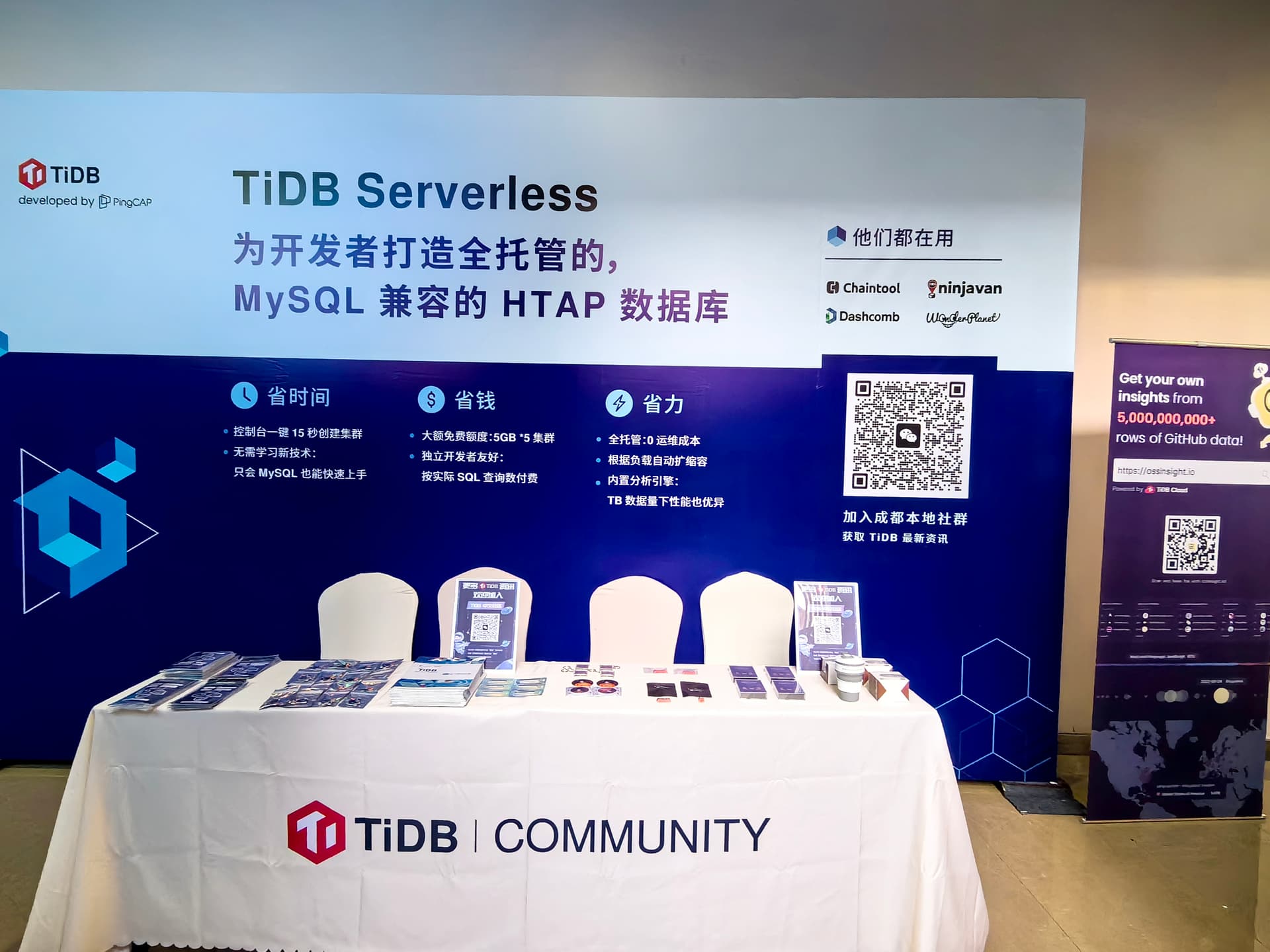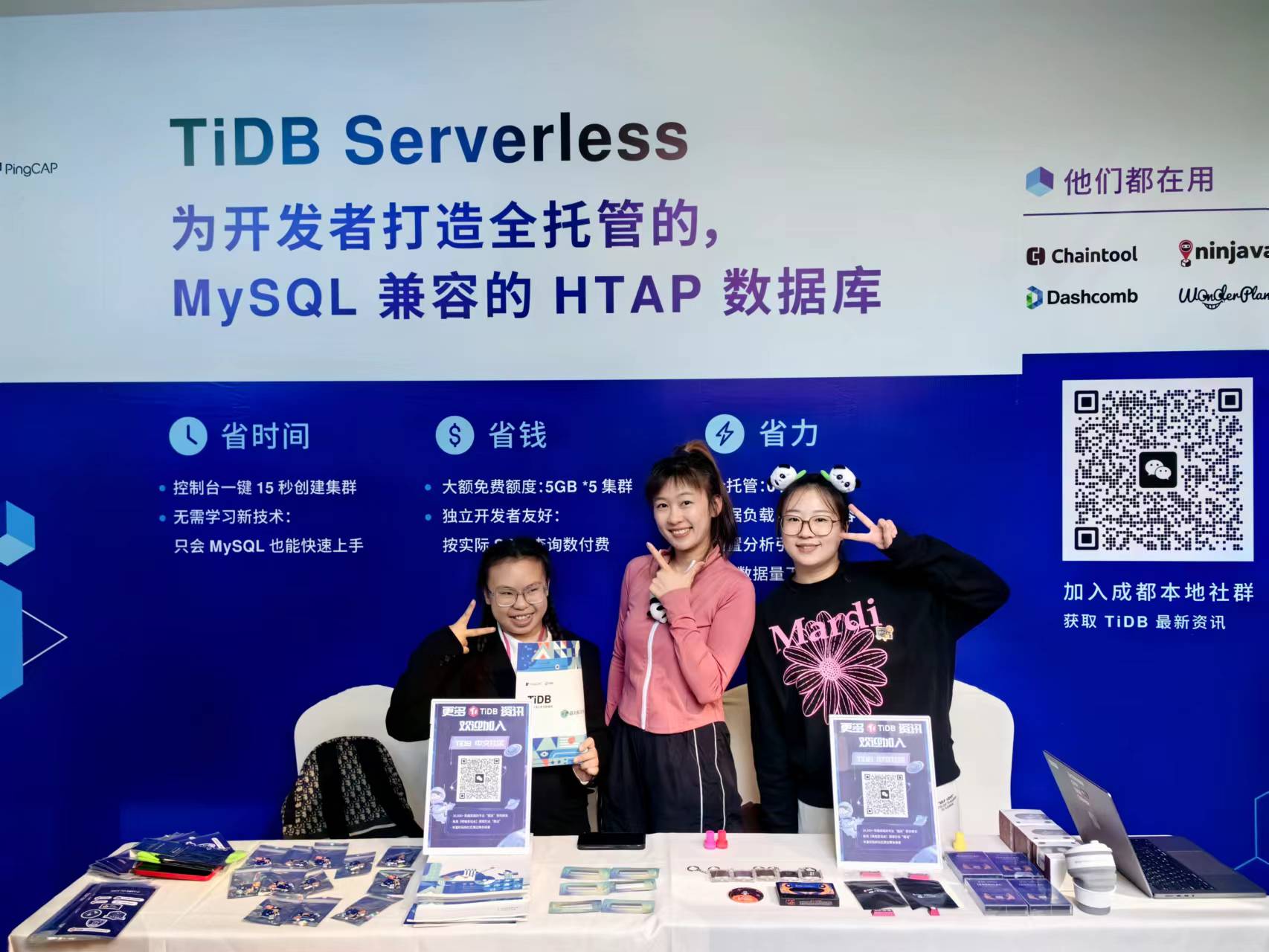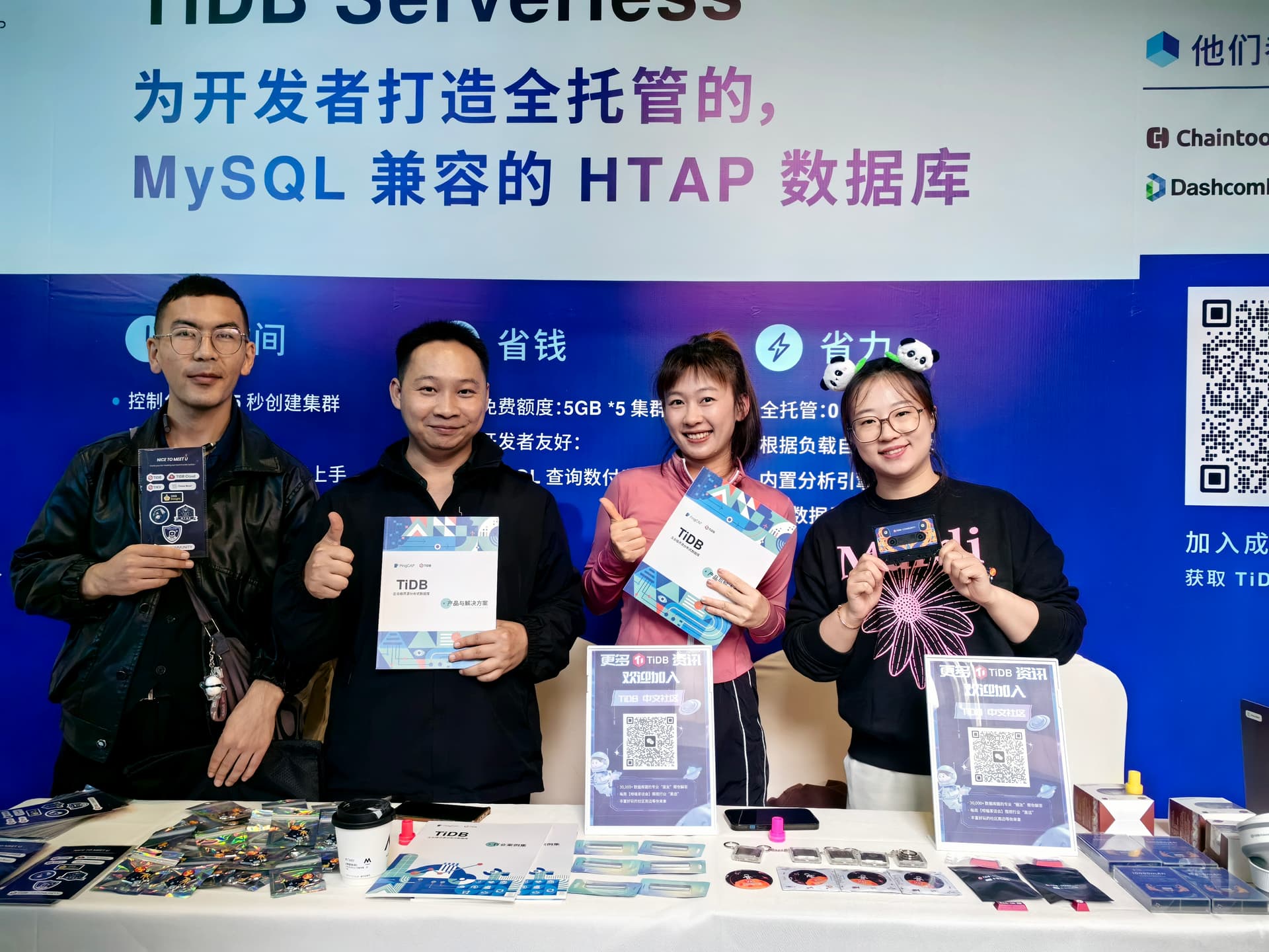 不仅仅是社区的老朋友们,我们还遇到了很多新朋友,有一些小伙伴说等成都的线下见面机会等了好久,也有一些小伙伴跟我们说 TiDB 是他知道的第一个国内做开源数据库的好产品,感谢每一个在社区坚持和 TiDB 并肩作战的朋友,很谢谢你的那句 “TiDB 做的挺不错的,社区特别好” ,这一份肯定背后不仅仅是社区的我们,更是每一个在社区的小伙伴共同维护的。