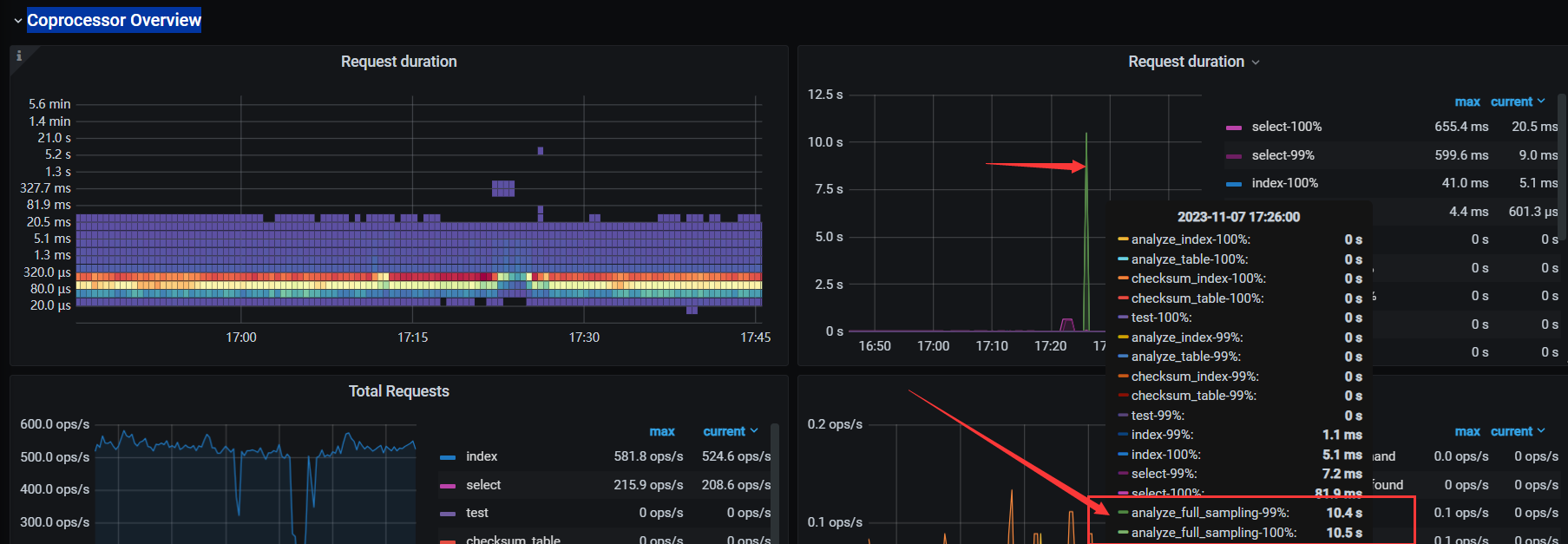 你可以看一下是不是因为统计信息的收集导致的慢,看一下tikv-detail-Coprocessor Overview
