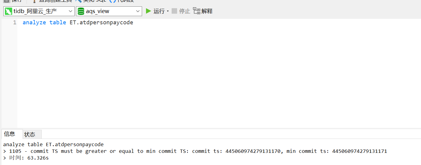 如果您仍然遇到问题,我建议您查阅 TiDB 官方文档中关于 ANALYZE TABLE 的章节,以获取更多关于该错误的详细信息和解决方案。