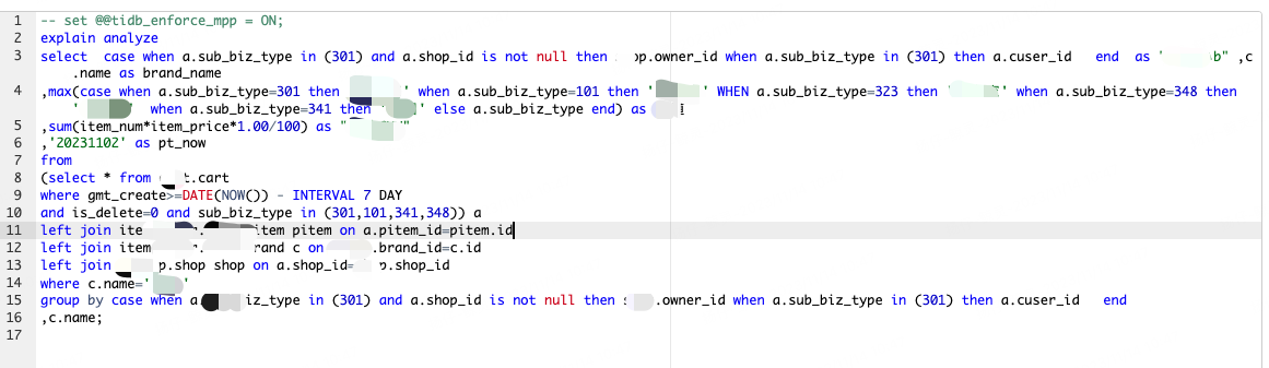 如果新集群在sql前强制走mpp,耗时大概在2-3秒仍然没有旧集群快
