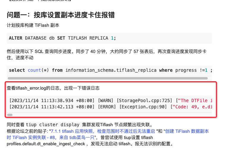根据论坛之前的贴子: "7.1.1 tiflash 应用快照,检查范围时不通过后无法重启 "和 “创建 TiFlash 数据副本时 TiFlash 实例失联 - #8,来自 tidb菜鸟一只”,曾尝试使用 tiup设置 tiflash profiles.default.dt_enable_ingest_check ,发现无法启动 tilfash。报无法识别的配置。