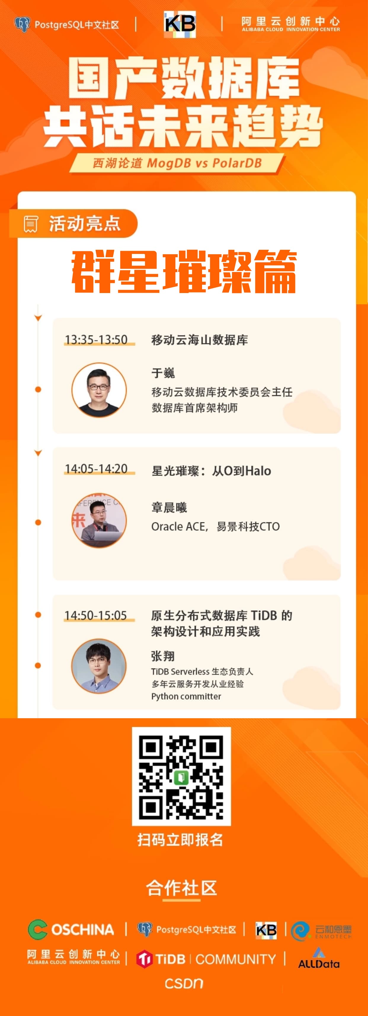 本周六下午在杭州有一个国产数据库探讨活动,欢迎感兴趣的 TiDBer 参加! ![]()
