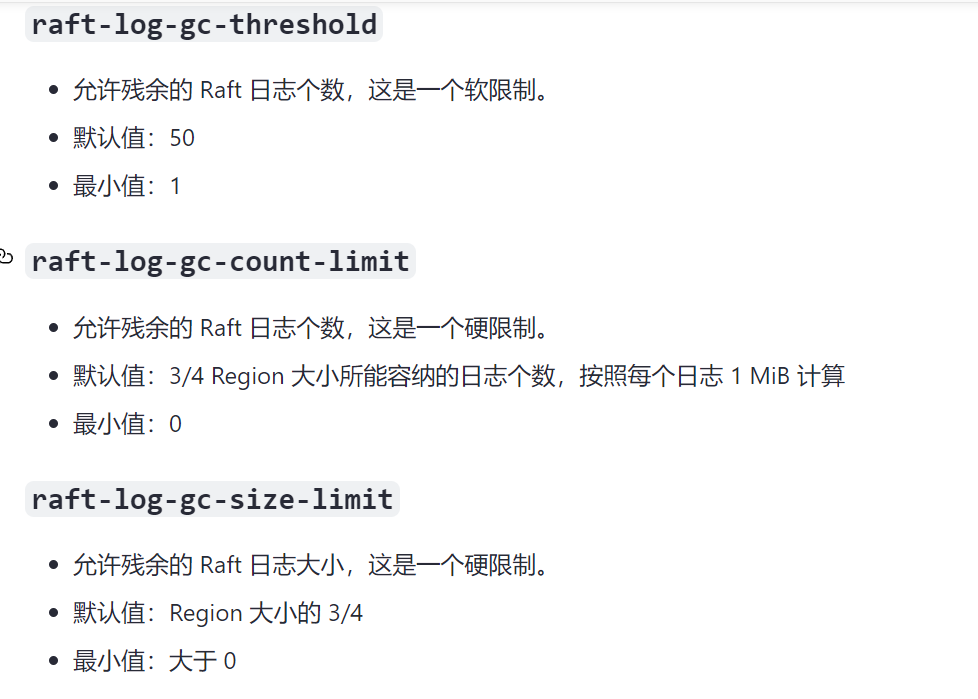 raft-log-gc-tick-interval)定期检查日志是否需要清理,确保日志不会无限增长