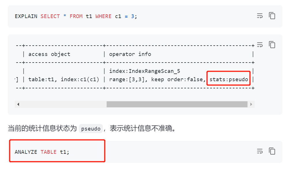 有可能是表的统计信息不准确,你可以参考如下图简单搜索一下,然后执行 ANALYZE TABLE t1;命令试试