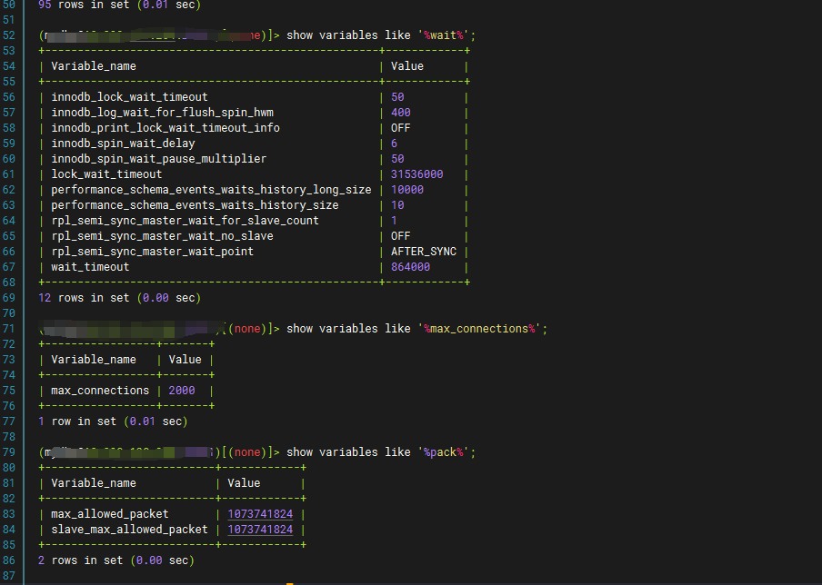 查看连接数相关参数,包括连接数、允许的包大小、连接时间等