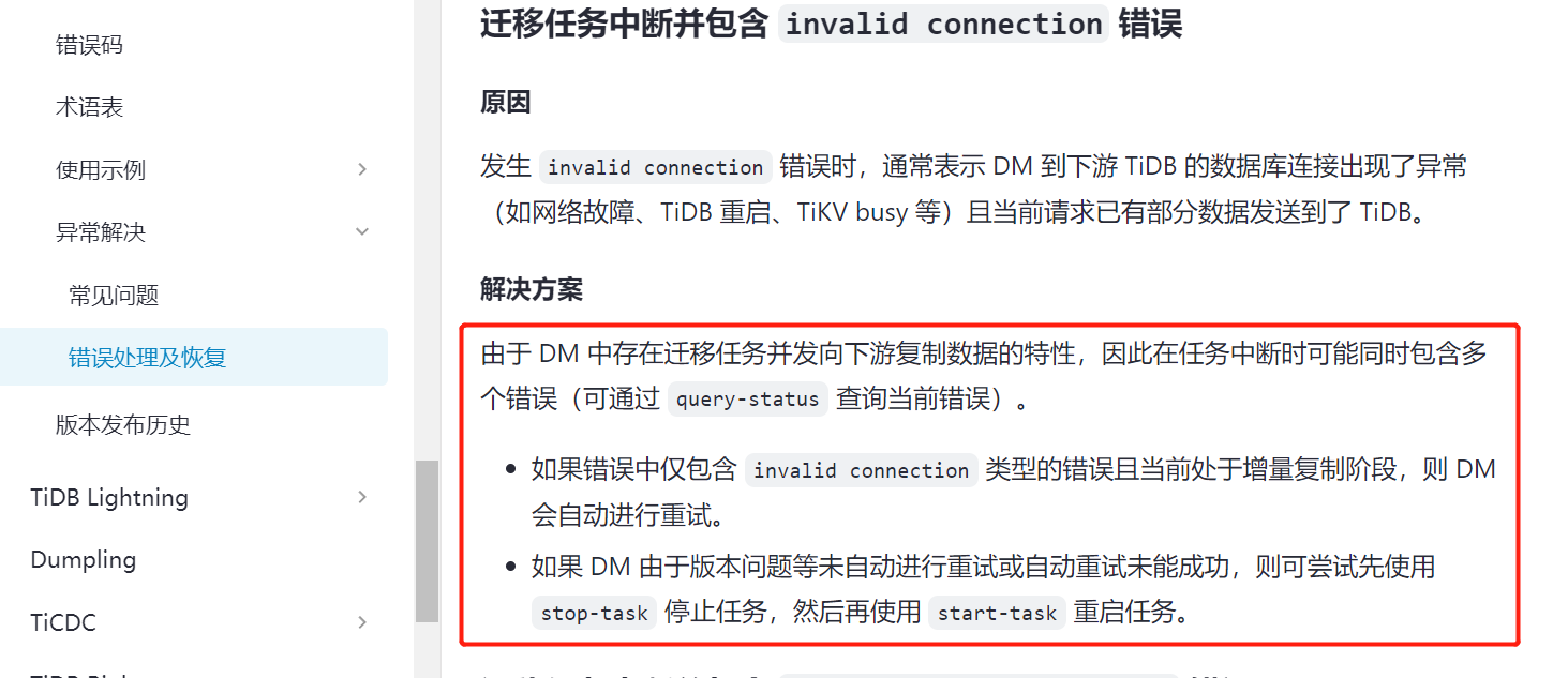 MySQL的前端能看到明显的抽数的sql tidb的后端也能看到dm用户连接 感觉不是连接问题