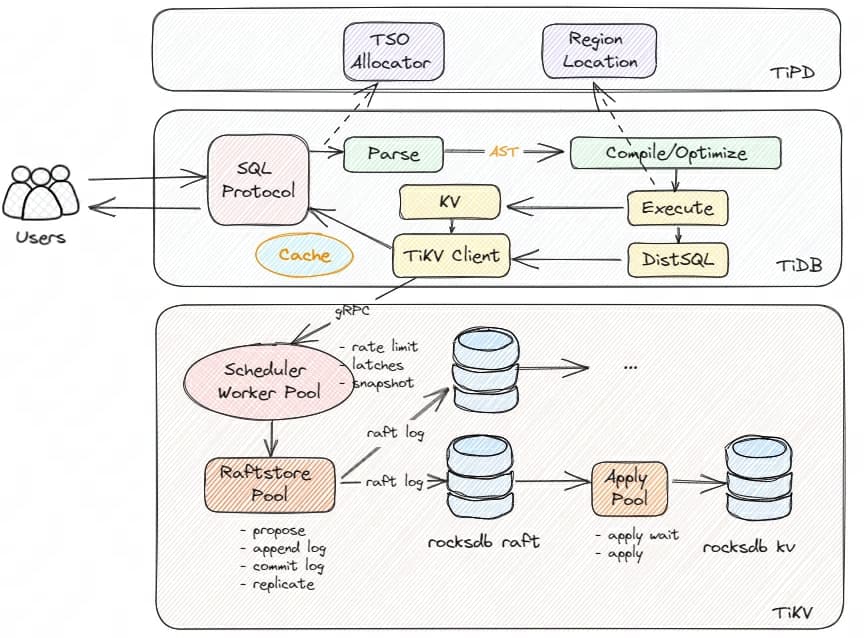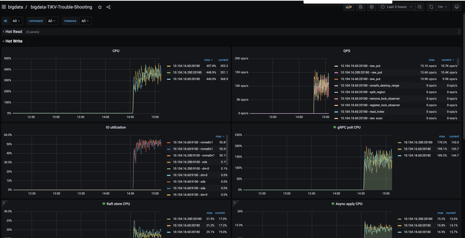 先排查 tikv 集群的性能情况,看看有无瓶颈点。找到瓶颈点,才方便去优化。