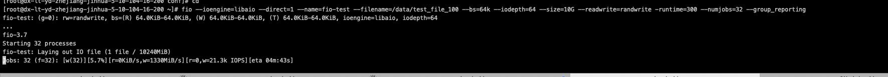 单硬盘都使用fio工具压测过,64KB随机写,平均IOPS=21.4k,性能没有问题。