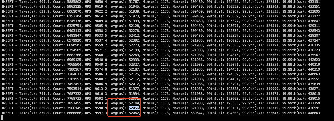 调整压测客户端并发后重新压测,线程并发=1500(调整更大并发,如2000,只会增加延迟,并不会增加写入QPS),压测客户端机器CPU资源使用率低于10%,不存在压测客户端性能问题。