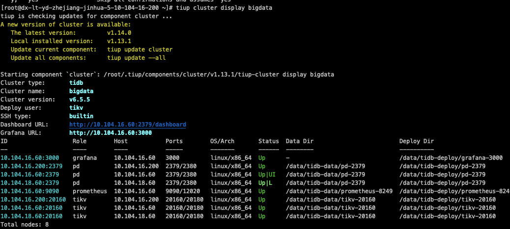 当前使用三台同机房64核、128G、2T NVMe硬盘搭建了TiKV集群,集群信息如下: