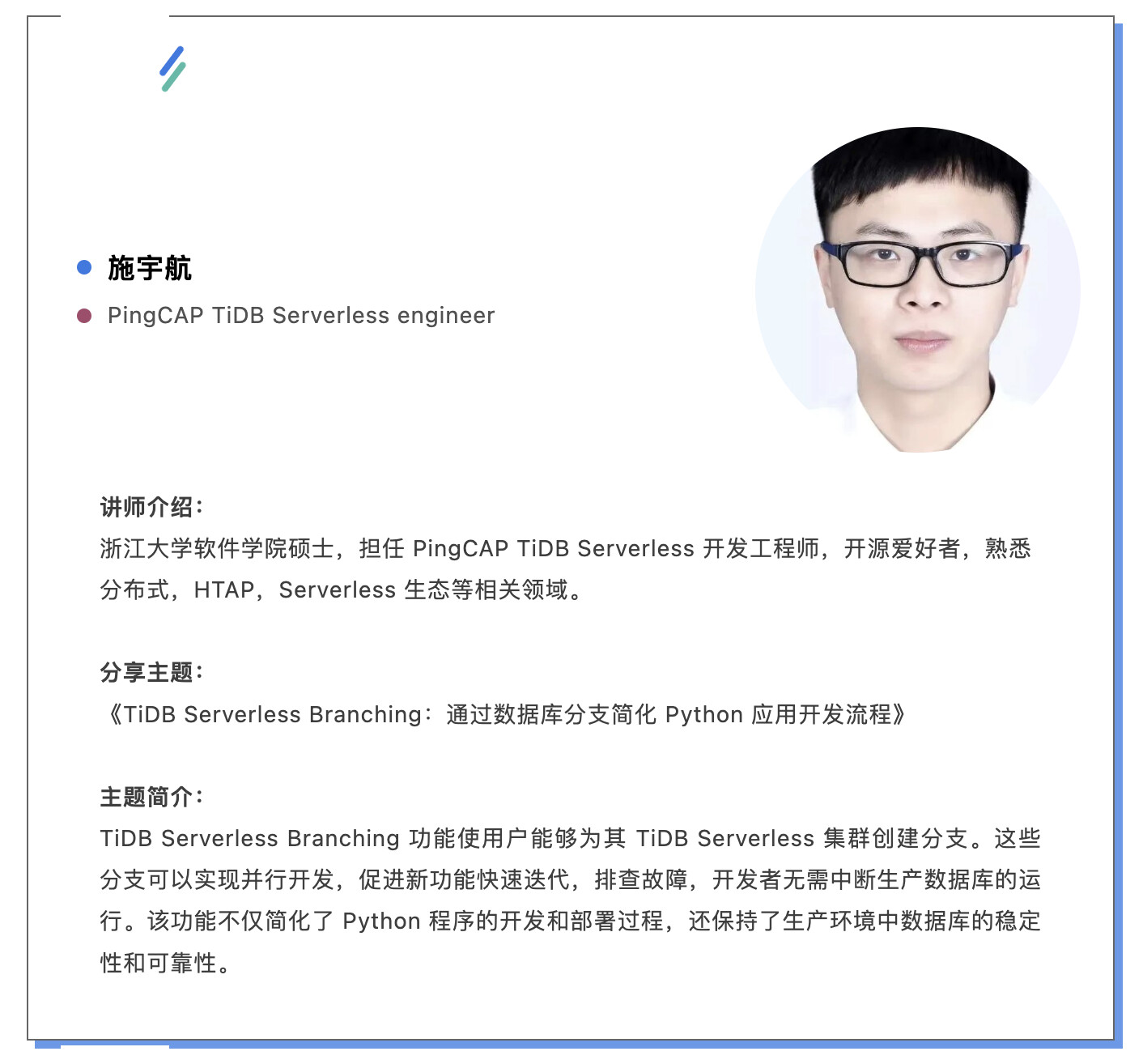 施宇航老师的 TiDB 主题分享: