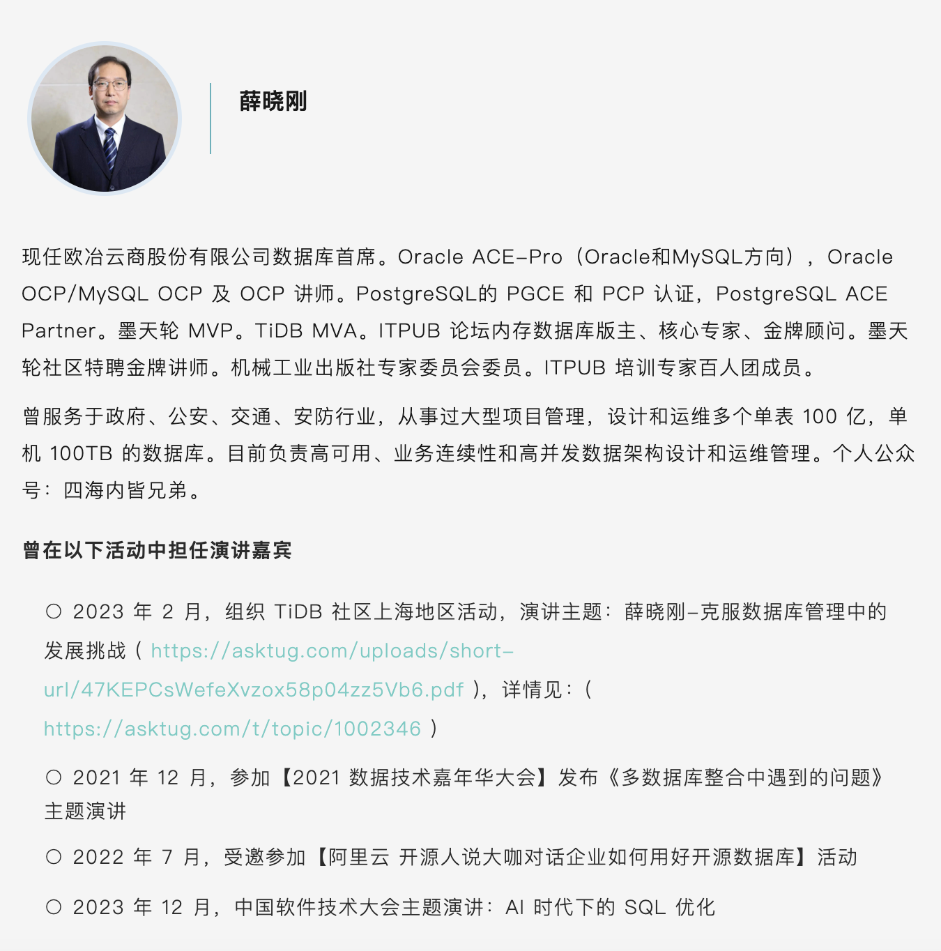 欧冶云商首席数据库专家