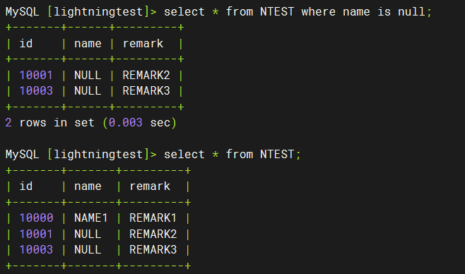 实际结果如下,空字符串和NULL值均被处理为NULL值存入TiDB数据库,与预期不符。