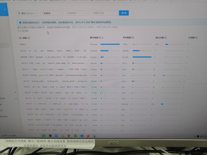 看起来SQL并没有太多,并发也不是很高,但是SQL跑的并不是很快,优化一下那几个TOP的吧,都是秒级的了