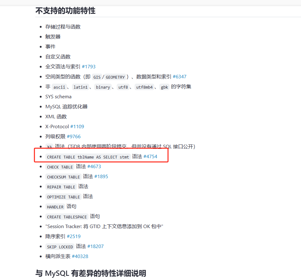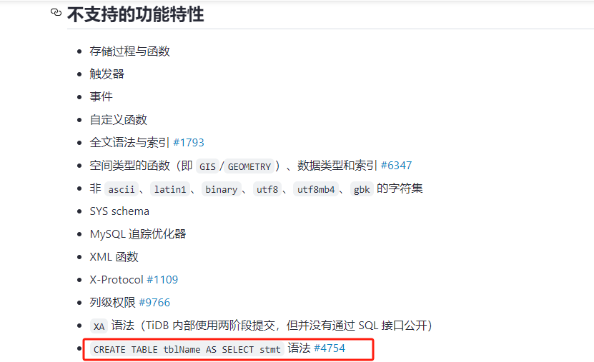 TiDB 不支持 CTAS 语句