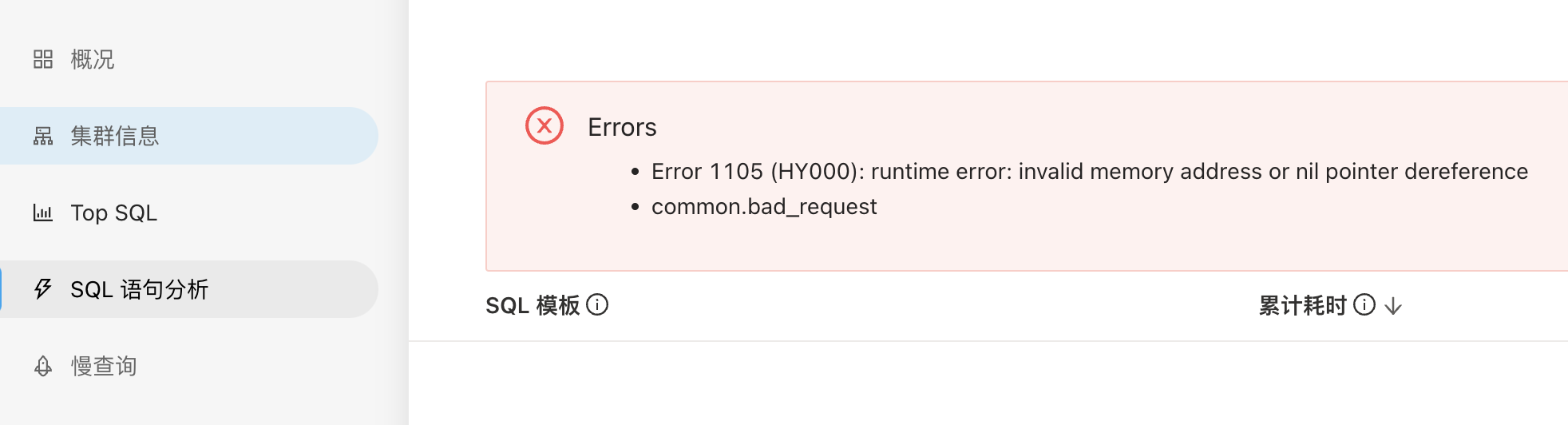 ERROR 1105 (HY000): runtime error: invalid memory address or nil pointer dereference