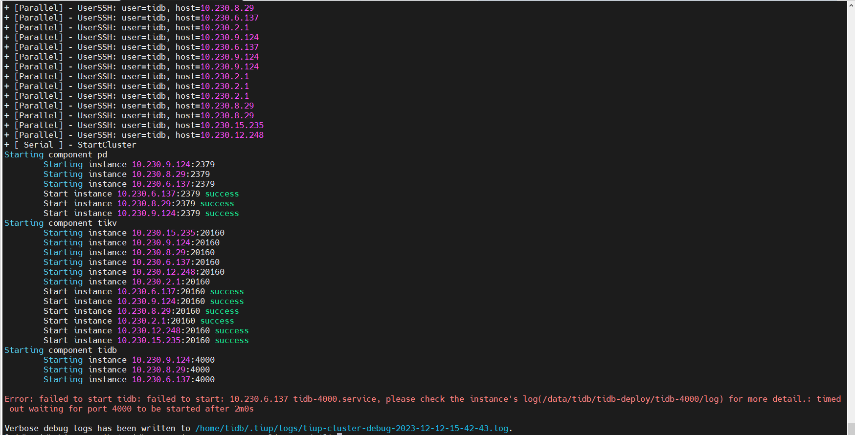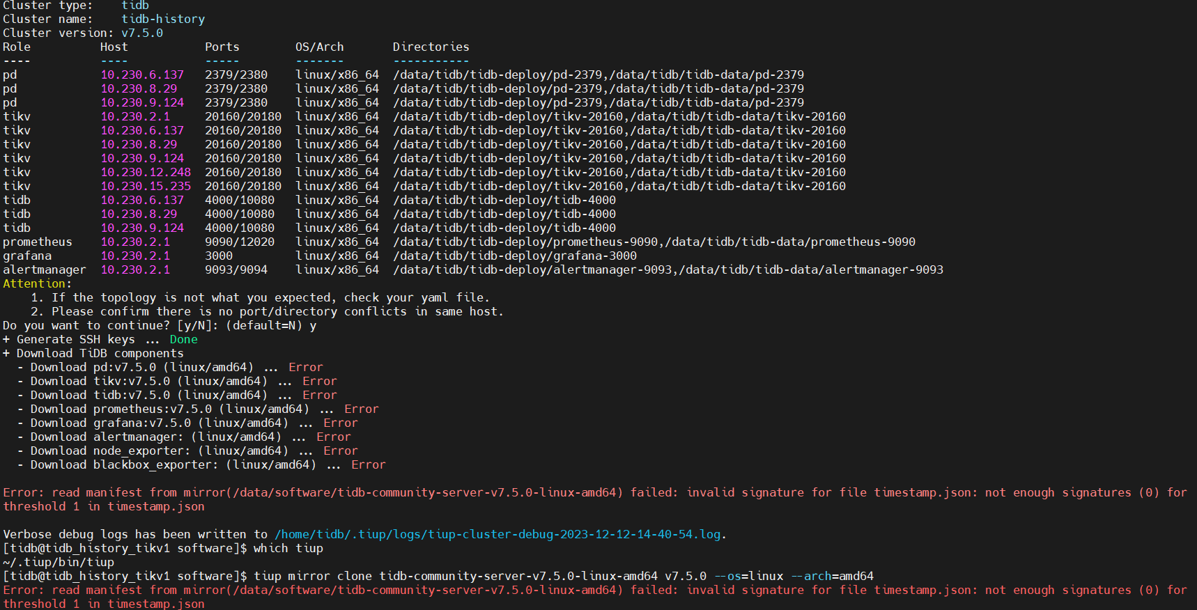 重新下载镜像包,安装启动tidb失败
