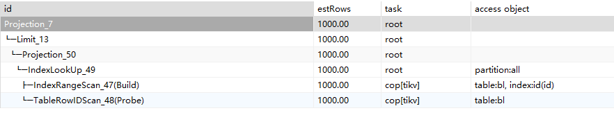 执行计划如上,速度挺快的。不应该会造成tikv大范围的扫描,进而导致unified read pool CPU 吃满。