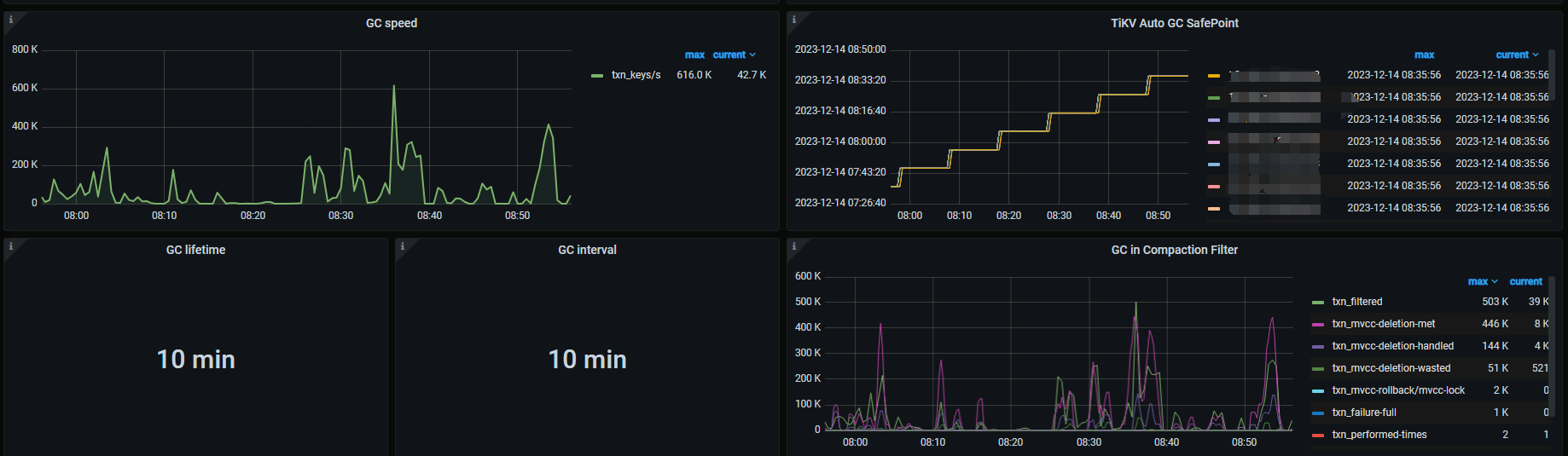 select * from mysql.tidb看tikv_gc_safe_poin时间