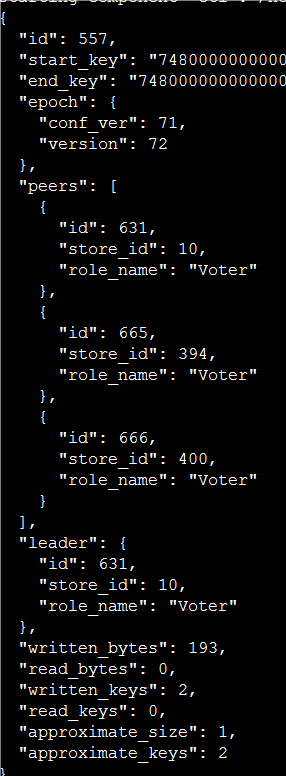 重启后,这个故障点store_id 397上的peer_ID 558已经去掉了。