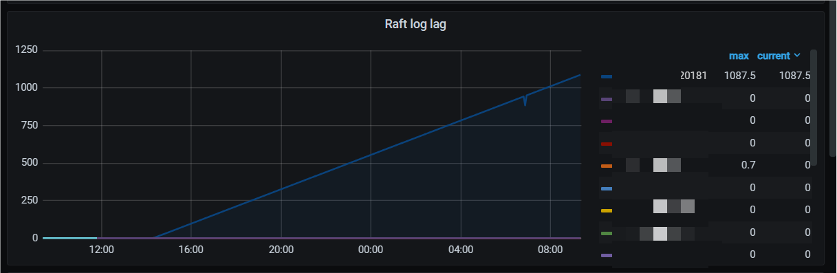 3.TiKV_raft_log_lag 有一个tikv节点较高,可能的原因是 Follower 所在的这个 TiKV 卡住了。