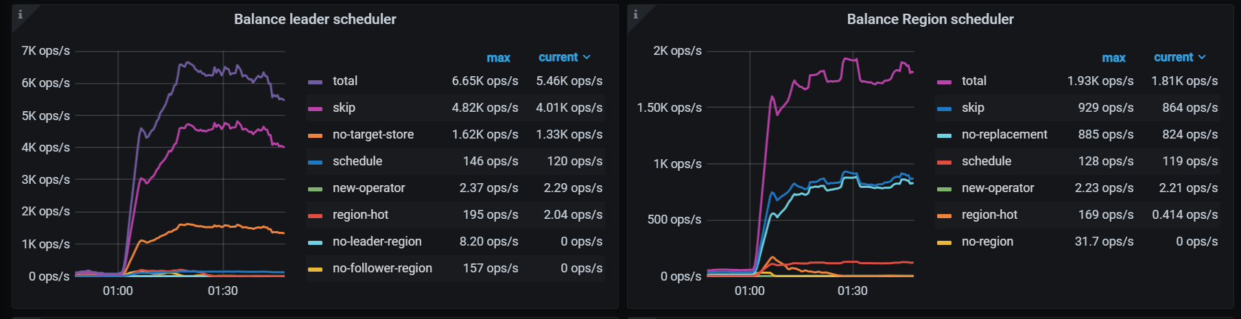 补充了两张图,看起来扩容的时候还是有很多balance-leader和balance-region发生的,但确实也有一堆merge-region伴随balance-leader一起。